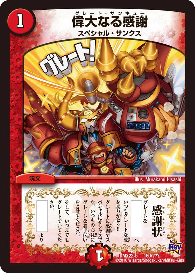16年12月16日(金) 希望小売価格 1パック 165円(税込) dmx22 革命 超ブラック・ボックス・パック 発売日 16年1月30日(土) 希望小売価格 1パック 2円(税込) 1box 5,280円(税込) 拡張パック dmr19 革命 拡張パック 第3章 禁断のドキンダムx 発売日 15年12月18日(金) 希望小 16年01月30日(土)、dmx22「革命 超ブラック・ボックス・パック」デュエルマスターズ新製品 が発売予定です。 ↓以下公式サイトからの貼り付けです。 商品概要 dmx22 革命 超ブラック・ボックス・パック 発売元株式会社タカラトミー発売日16年1月30日(土)希望小売価格1パック:0円+税 1box